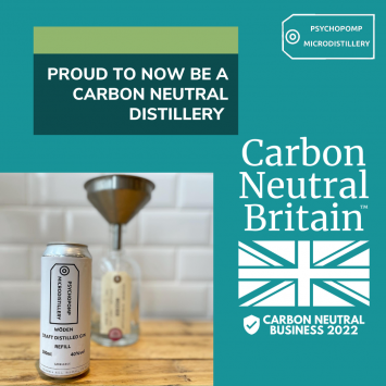 Psychopomp Micro-Distillery and Circumstance Distillery co-owner Liam Hirt commented, “We are absolutely delighted to have achieved Carbon Neutral status. In the UK, businesses account for over 85% of total Greenhouse gas (GHG) emissions – making corporate action the number one priority in helping stop climate change. We have always had a clear sustainability strategy and we have been working towards carbon neutrality from the outset. This certification is a huge achievement for us and a major step towards our sustainable business goals.”