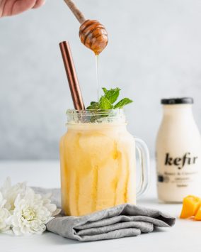 Kefir is a nutrient rich, bio-live drink made from milk and live cultures. It has a wealth of health benefits; it supports metabolism, contains gut-friendly bacteria, it’s a good source of protein and it’s high in calcium.