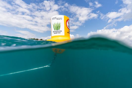 Dr Jean-Luc Solandt, Principal Specialist of Marine Protected Areas at the Marine Conservation Society, explains why the ‘no anchor zone’ buoys are so significant: “The area of Seagrass we are seeking to protect with this installation is around 300,000m2 and we’re aiming to protect it from damage made by visiting vessels anchoring in this area. Seagrass is the most important habitat in the marine environment for our fight against climate change, even though it covers a very small amount of our sea, it is extremely effective at capturing carbon and supporting fish populations.”