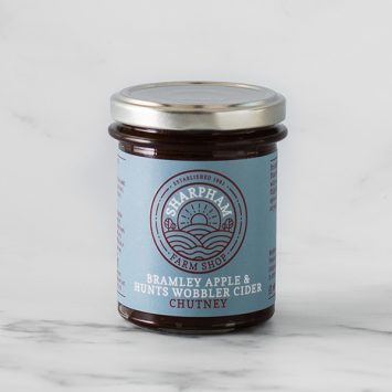 British Bramley Apple & Hunts Wobbler Cider Chutney £4.50 – combined with ground spices, and sultanas it’s slightly sharp, tangy and lightly spiced.