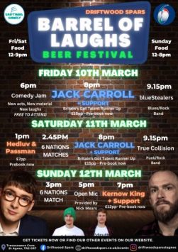 The Driftwood Spars in St Agnes will host its inaugural Barrel of Laughs Beer Festival from 10th – 12th March, with a stellar line-up of top comedians, live music and handcrafted beer from some of the UK’s best small breweries.