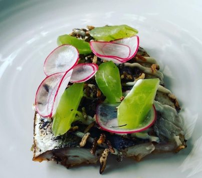 The menu featured a mouthwatering selection of dishes showcasing the best of Cornish seafood, such as sliced scallops with ponzu dressing and pink grapefruit, teriyaki mackerel with cucumber and wasabi, Korean fried monkfish tail with spicy pickles and raspberry poached tamarillo with bergamot and vanilla panna cotta. The guests savoured every bite and enjoyed the live music from the band.