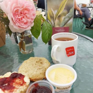 At the Royal Cornwall Show, I was invited into the Tregothnan tea tent. They produce the first and only tea grown in England. They have been growing tea since 1999, using their own estate and partner growers across the country. They have a range of teas to suit different tastes, from black tea to green tea to herbal infusions. I decided to have a cream tea that included their deliciously delicate classic English tea, along with Rodda’s clotted cream and Boddingtons Berries strawberry jam. It was a delightful treat that showcased the best of Cornish produce.