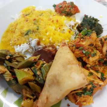 The food was scrumptious, with a rich depth of flavour and fresh ingredients. We had bhindi masala with fresh okra, tomato and garlic, Salnia’s chicken with succulent chicken, garlic and coriander, rice and dahl, handmade chapati with a soft and chewy texture, and three kinds of chutneys: tamarind (Immli), green (Hari), and garlic (Lahsan). I could taste the coriander, garlic, tomato, mint, and tamarind in every bite as we shared different dishes around the table.