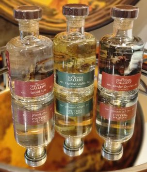 The National Gallery is open 7 days a week from 10am, located in Trafalgar Square, London and the spirits can be found in the various gift shops at the museum.