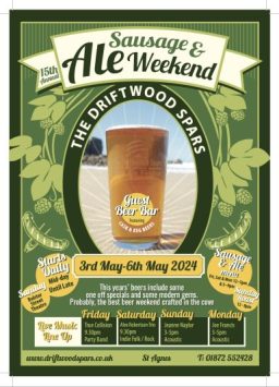 Community-centric brewpub, The Driftwood Spars in St Agnes, is hosting its annual Sausage & Ale Weekender over the first bank holiday in May, with music, guest beers, and tasty bangers to fuel the fun.