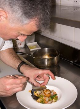 Not much from my childhood. My childhood was a bit different. My mother died when I was 8, of breast cancer, which was very sad. My father was a bit old school, and I didn’t get on with him, so I left home just before my 16th birthday. I slept rough for a few weeks on a bench, and I moved in with friends, so I didn’t have memories of really great food. The memories I have of food are probably ham, egg and chips, and beans. So, not what everybody would imagine. I was offered a job as a washer-up in a restaurant, which at the time I didn’t know, was a really good restaurant in Swansea called The Drangway. It was owned by the chef Colin Pressdee and it was amazing. I worked all hours because I had nowhere to go, so they loved me. I fell in love with cooking. Catering became my family. I got promoted very quickly because I was working all the time, and before I knew where I was, I was a Chef de Partie and then a Sous Chef. I crammed into four or five years what most people would cram into eight years.