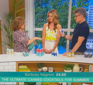 Bar Buoy, the award-winning ready-made cocktail brand based on the Devon coast, was proudly featured on ITV’s This Morning on Wednesday 16 July. The brand’s ready-to-drink Negroni received high praise from drinks expert Helen McGinn, along with presenters Ben Shephard and Cat Deeley, during a live tasting segment called: “The Ultimate Canned Cocktails for Summer.”