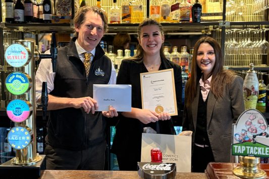 Realising her passion was looking after customers, and keen to continue developing her career in hospitality leadership, an opening came up at The Riverside and Sophie joined as a trainee manager before progressing to Assistant Manager while completing the Level 3 qualification. Her favourite part of the course was being able to apply what she learned directly back into the pub environment. “Taking what I learned and actually putting it into practice in the pub made the biggest difference.”